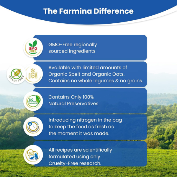 • Personalized Support: Access free nutritional plans from our Farmina Genius Consultants online or via the FarminaGenius App.